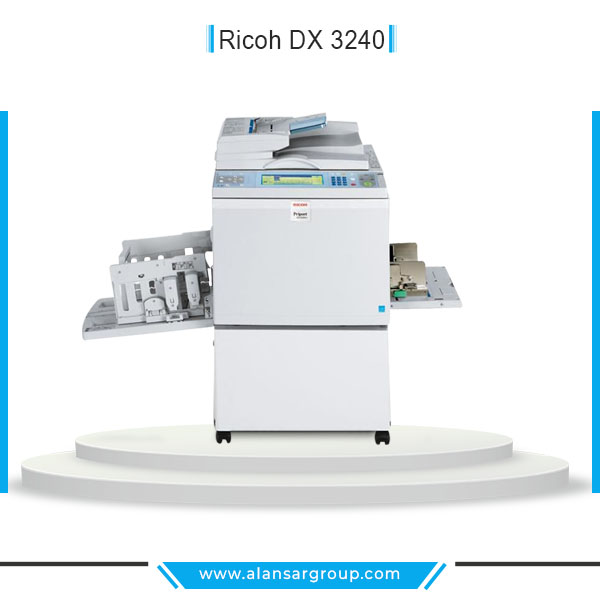 مع ماكينة الطباعة التصويرية ريكو DX 3240 يمكنك التصوير بسرعة 130 نسخة/الدقيقة A4 بنظام الماستر على الورق العادى و الخفيف 47 جرام و المكربن بتكلفة منخفضة تناسب المطابع و دور النشر و مراكز التصوير ذات المعدل العالى
